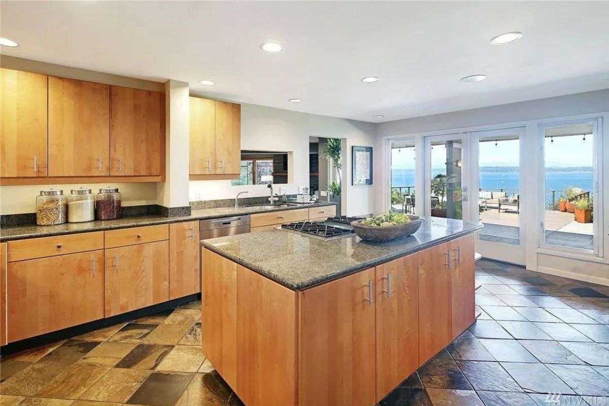 The top priorities for the client’s kitchen were a space for entertaining and to enjoy the sweeping Sound views. The existing late-90s kitchen was outdated and the walls separated the kitchen from the rest of the home.
